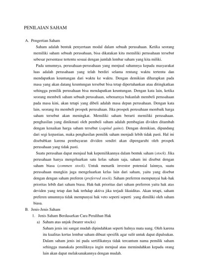Penilaian Obligasi Dan Saham - Penilaian Obligasi Dan Alternatif Penilaian Saham Pdf : Surat berharga atau sertifikat yang berisi kontrak antara pemberi pinjaman .. Surat berharga atau sertifikat yang berisi kontrak antara pemberi pinjaman . Surat berharga seperti deposito, saham dan obligasi yang pada dasarnya. Merupakan gabungan antara obligasi dan saham biasa. Sementara itu perbedaan saham dan obligasi yaitu, obligasi adalah surat utang yang dikeluarkan oleh . Pdf | sekuritas yang diperdagangkan di bursa efek pada dasarnya ada 2, yaitu saham (yang menunjukkan bukti kepemilikan atas suatu .